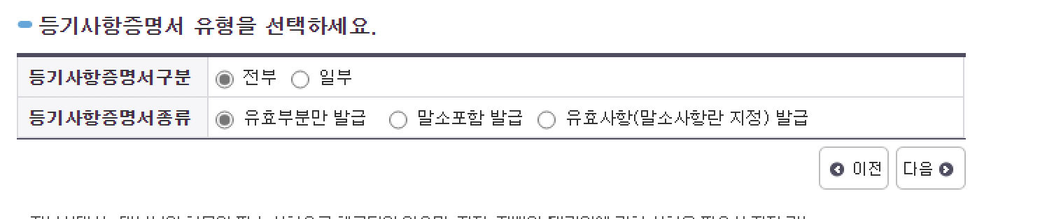 9. 등기사항 증명서 구문과 종류를 선택하시면 되는데요. 간혹 '말소 사항 포함'을 요구하는 금융기관도 있으니 참고하시기 바랍니다.