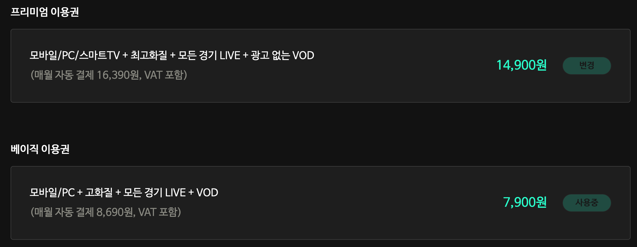 모바일/PC + 고화질 +모든 경기 LIVE +VOD = 7,900원