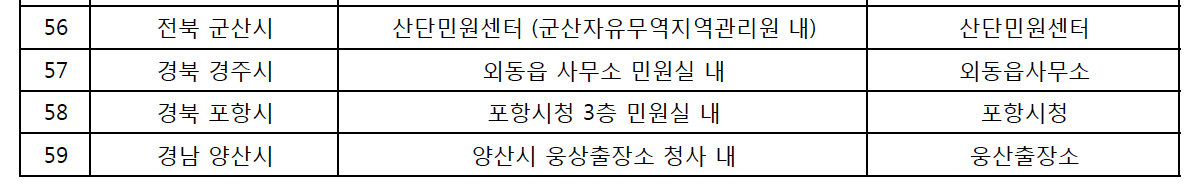 3. 인천은 총 8곳이 있습니다. 구청에 주로 있고요. 영종도에도 있고요. 송도에도 주민센터에 위치해 있습니다.