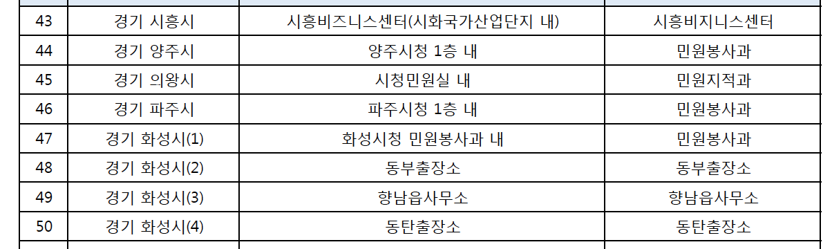 아래 리스트는 PDF 전국 무인 민원 발급기 (법인인감증명서 가능) 리스트입니다. 다운로드하셔서 사용하셔도 됩니다.
