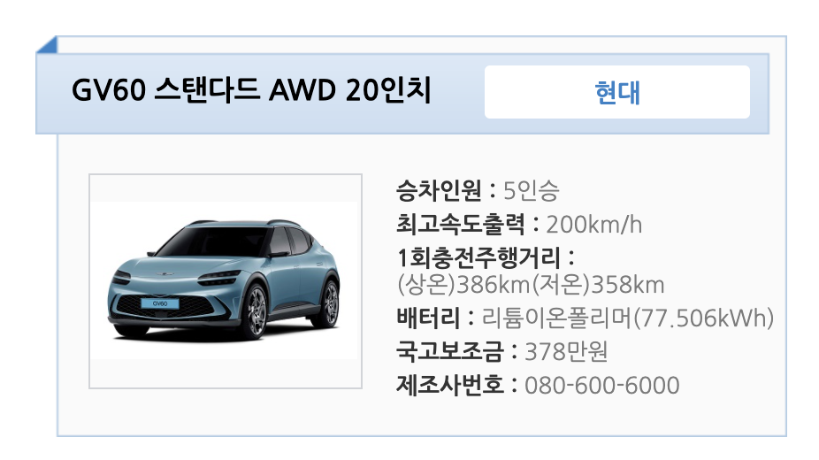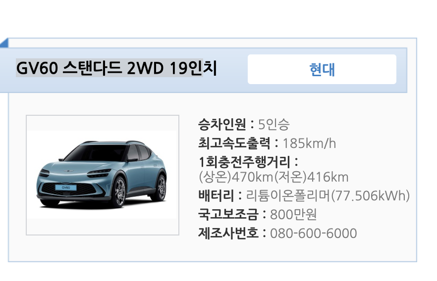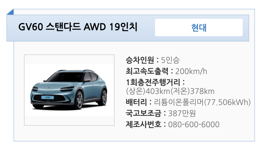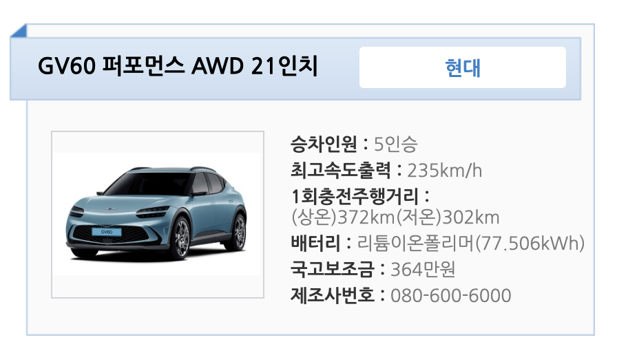 2. GV 60 스탠다드 awd 20인치 전기차 보조금 ?