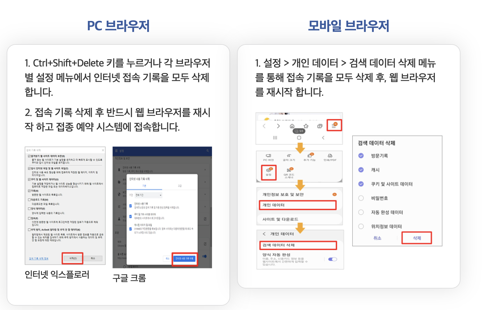 대기창의 인터넷접속 기록을 모두 삭제하고 웹 브라우저를 종료 후 다시 시작해 주시기 바랍니다.