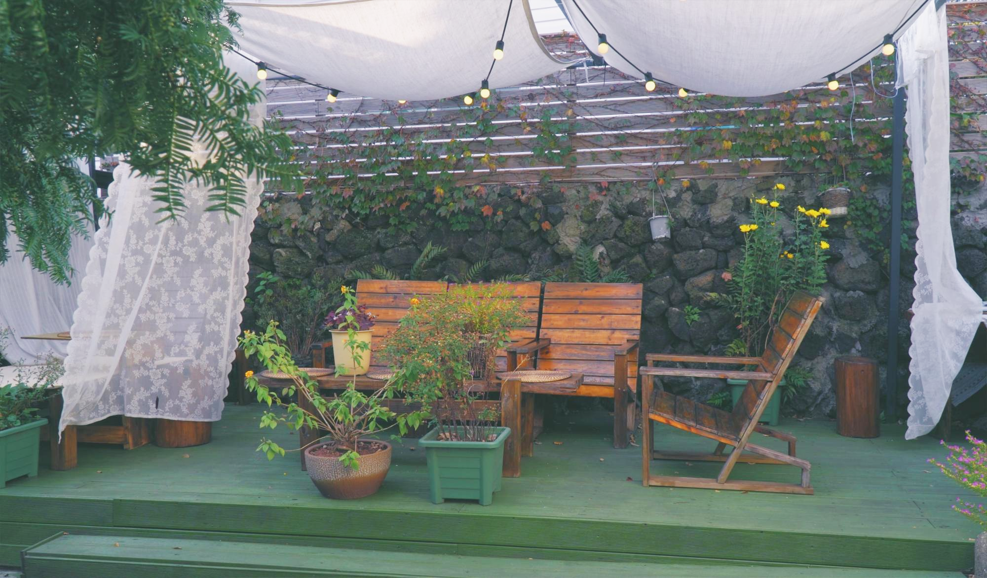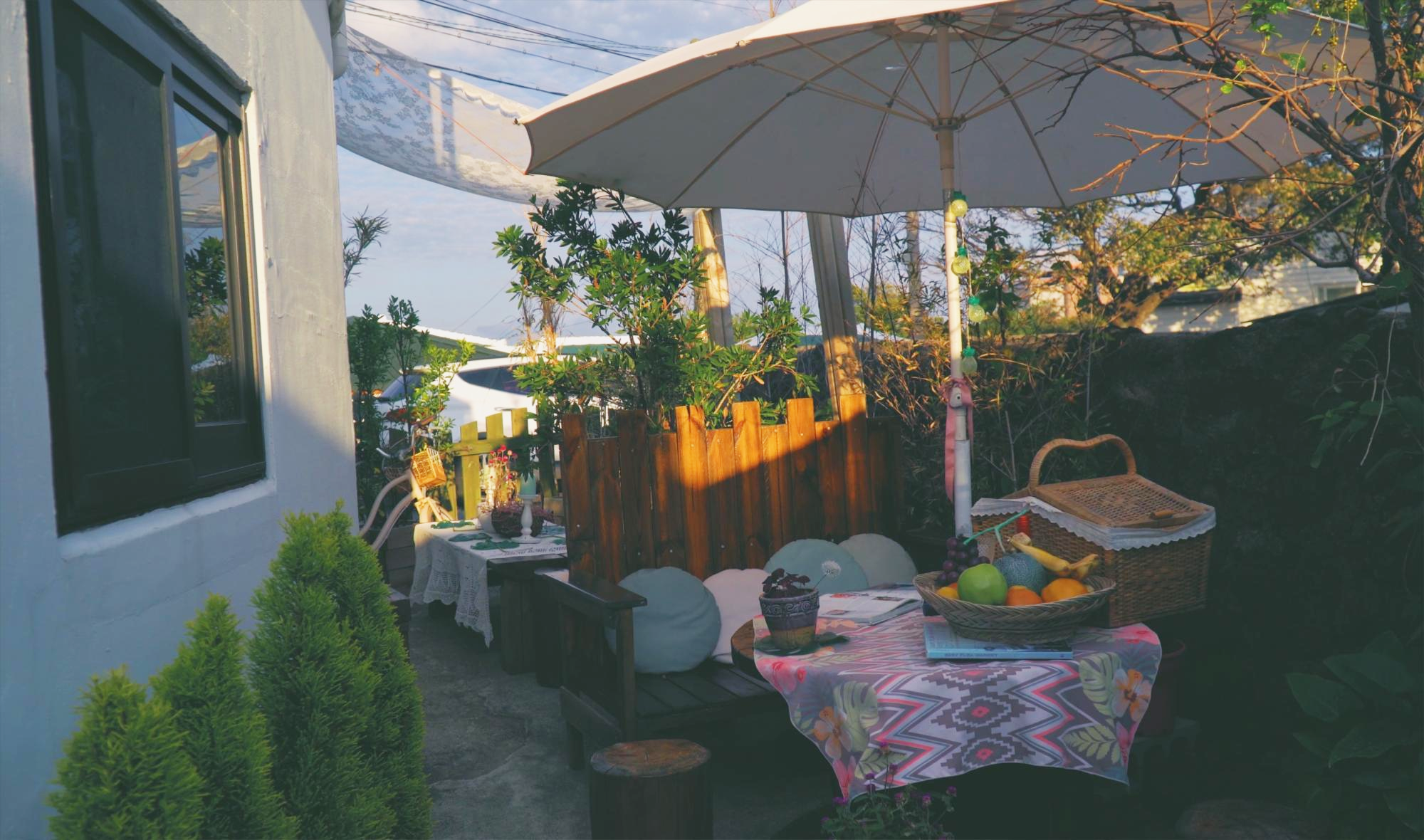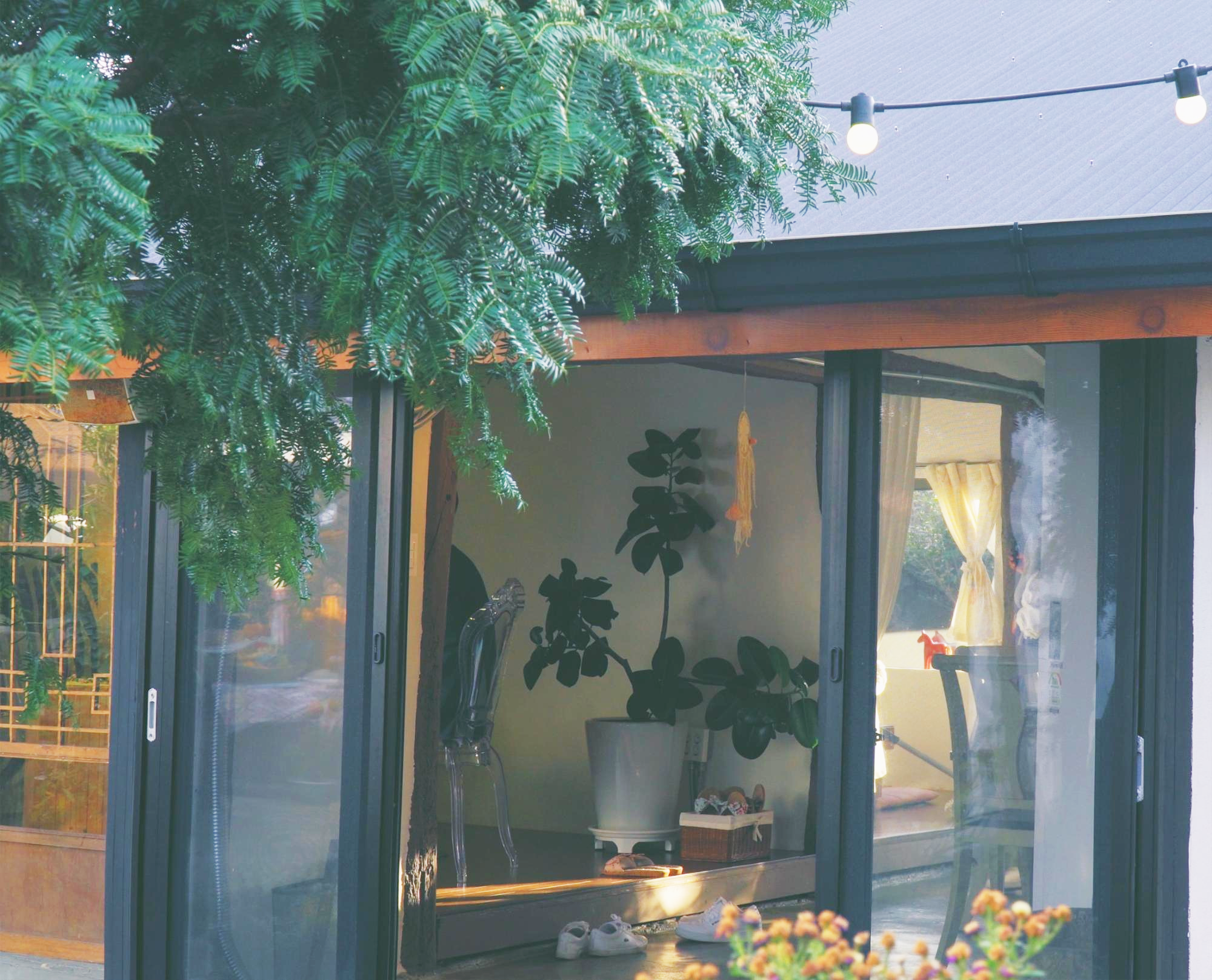 앞뒤로 붙은 구옥 두 채를 연결해놓은 듯한 특이한 구조라 중간에 정원이 있다. 그 정원과 아마 뒷집의 출입구로 쓰였을 공간에는 피크닉에 온 듯한 테이블들이 몇 개 자리잡고 있었다.