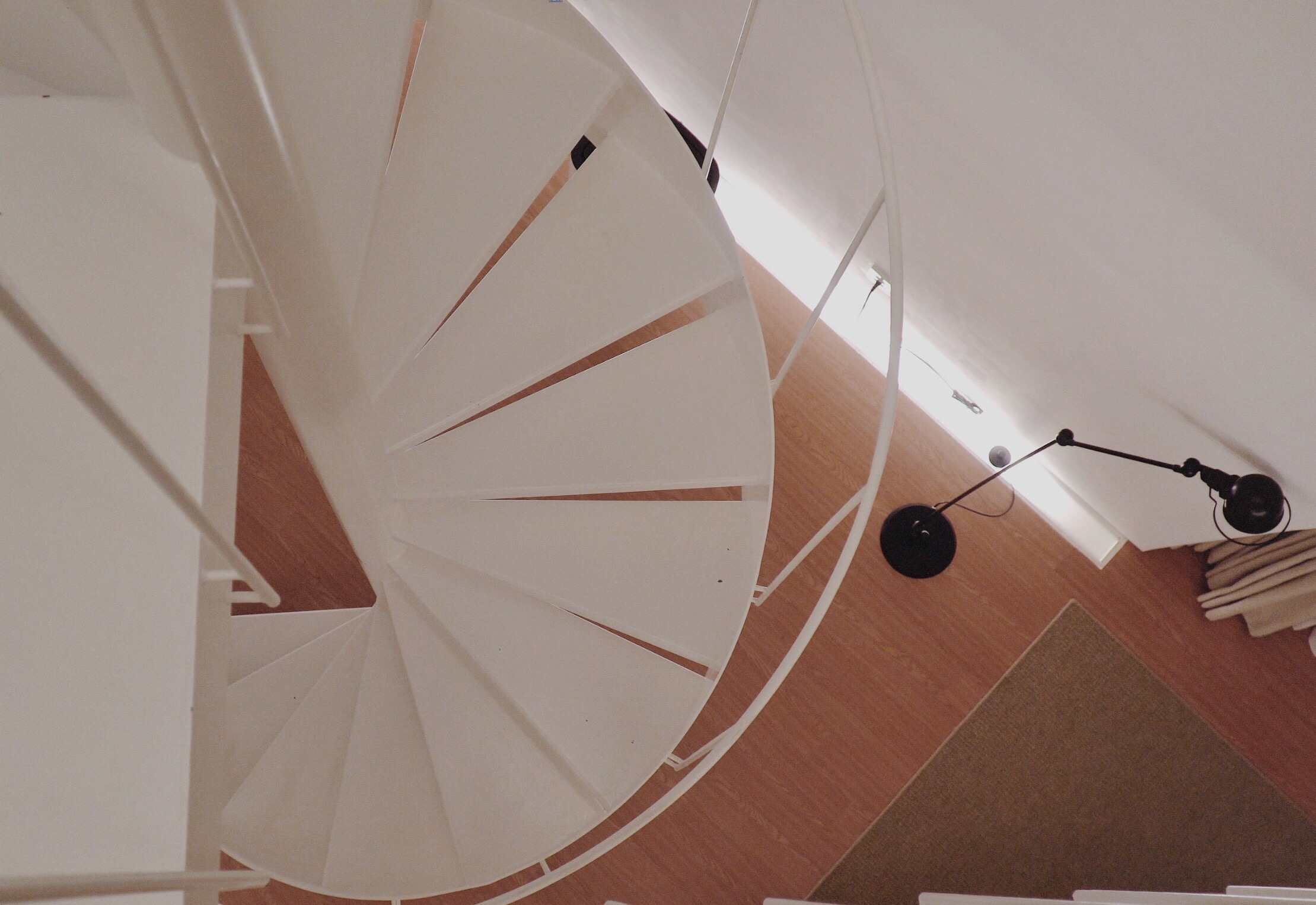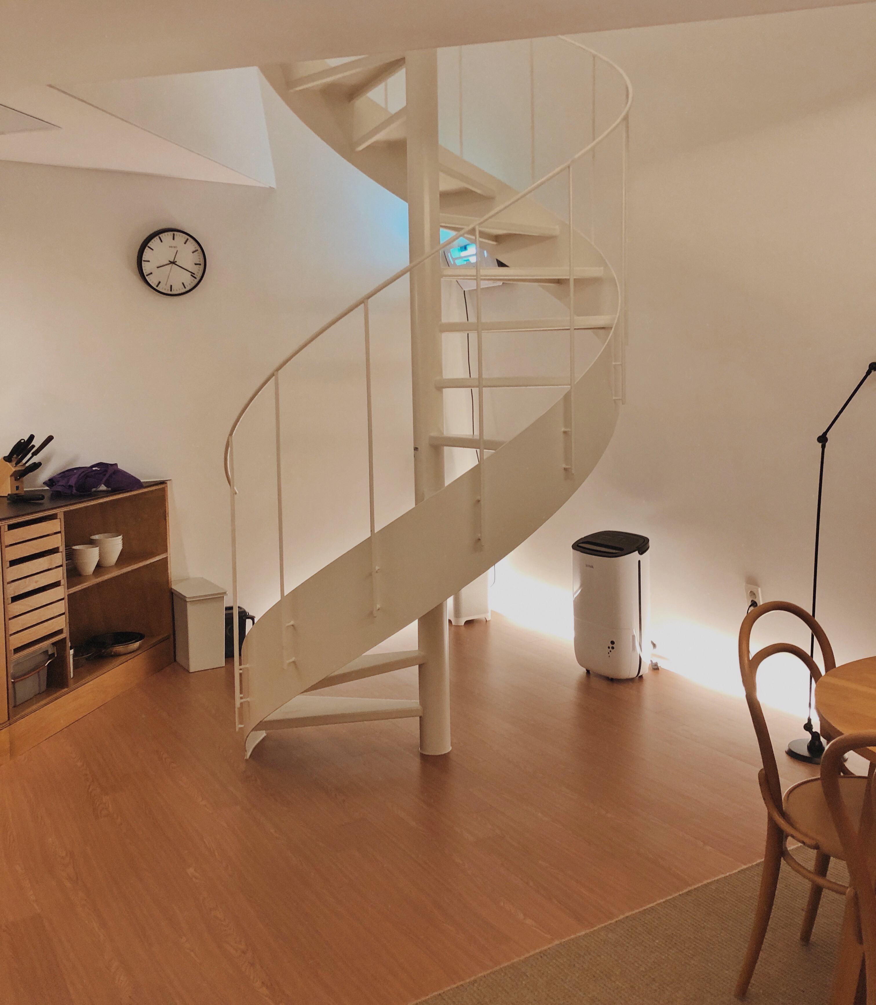 2층에서 1층으로 내려오는 내부 계단이다. 철제 계단이라 무너질 염려는 없다. 아, 저 바닥 부분에 등을 설치한 게 마음에 들었다. 일반 가정에서 저렇게 하려면 음.. 보일러 엑셀을 피해 반듯하게 바닥을 깰 수 있으려나? 아님 저만큼 목공으로 바닥을 돋우어야 할까? 그러느니 차라리 집을 짓는 게 낫겠지 싶다. 직접등을 혐오에 가깝게 싫어하고 간접등을 좋아하는 나로서는 정말 탐나는 아이템이 아닐 수 없었다.