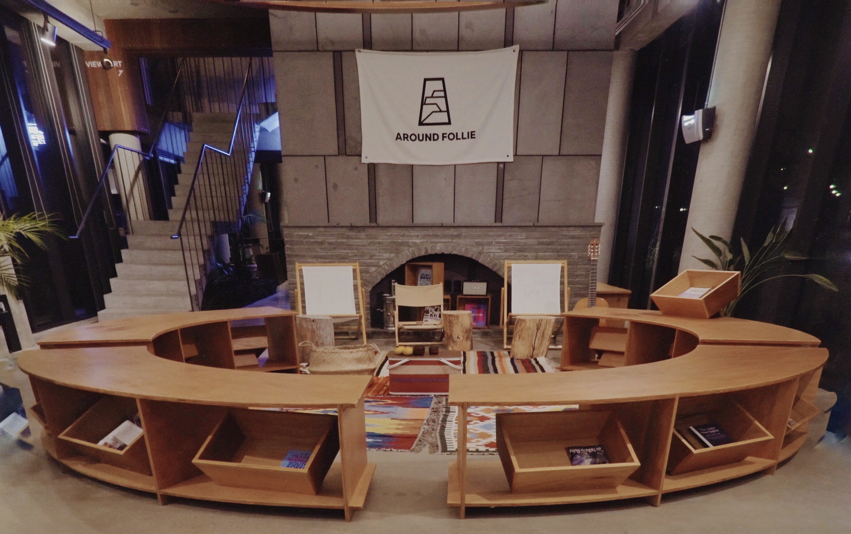 우린 역시나 저녁을 먹고 늦은 시간에 체크인을 했다. 어라운드 폴리는 카페와 펍을 함께 운영하고 있었다. 체크인은 출입문을 들어서자마자 보이는 공간에서 이루어졌다. 어두운 시간에 처음 마주했을 땐 대체 우리가 머물 숙소가 어떻게 생긴 곳인지 짐작조차 하지 못했다.