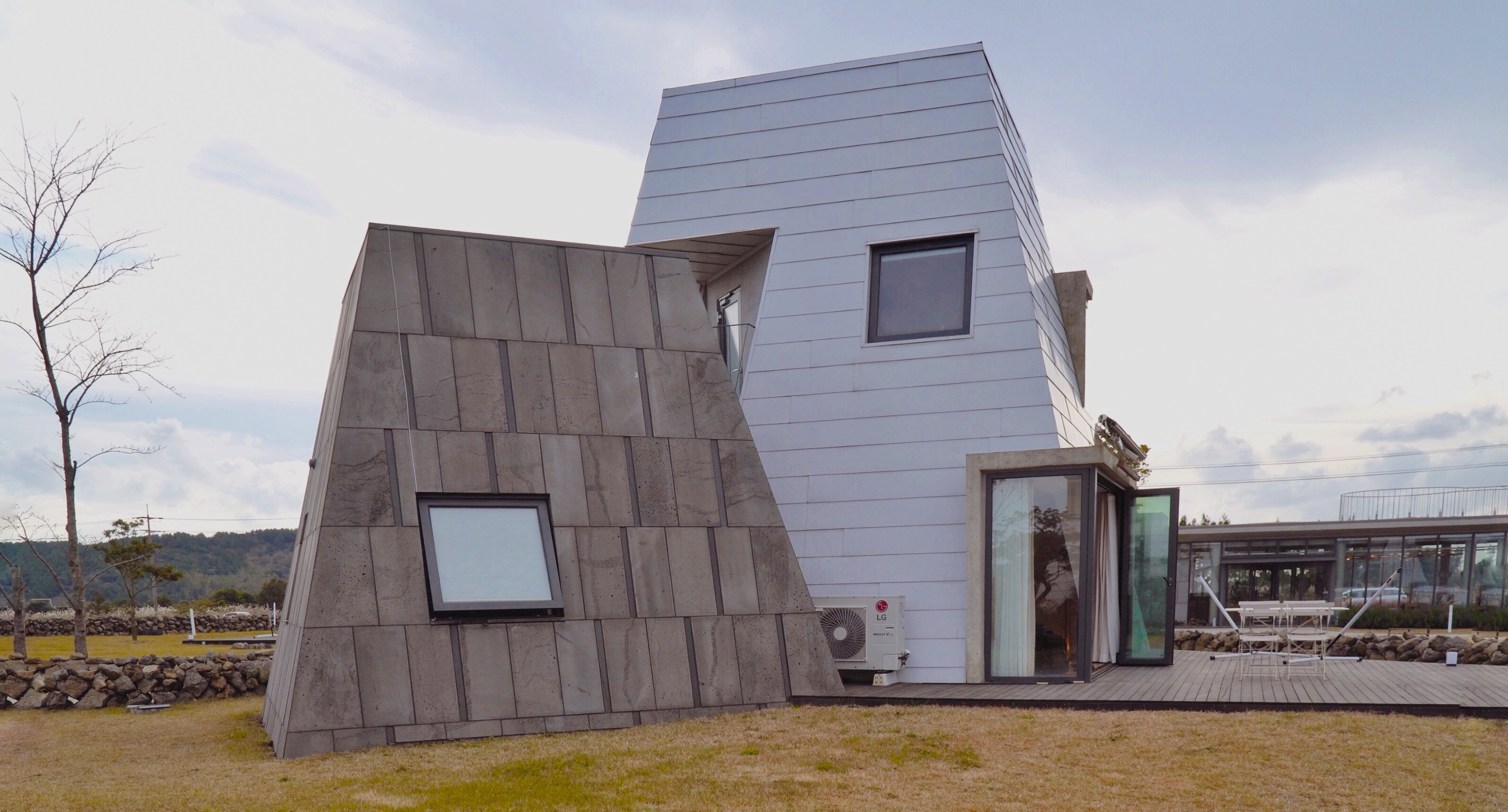 윗 사진에 보이는 벽 뒤쪽으로 카페가 있다. 신청 시 조식도 제공되는데 그 카페 공간에서 브런치 플레이트 형식으로 제공하는 듯했다. 우린 좀 더 제주스러운 식사를 하기 위해 조식을 신청하지 않았다. 오전에 체크아웃을 하면서 일행이 커피를 테이크아웃하는데, 제공되는 음식이 먹음직스러워 보인다고 했다. 1인당 1만 원 선이었던 듯한데, 꽤 괜찮다는 걸로 봐선 조식을 시켜먹었어도 좋았을 뻔했다.