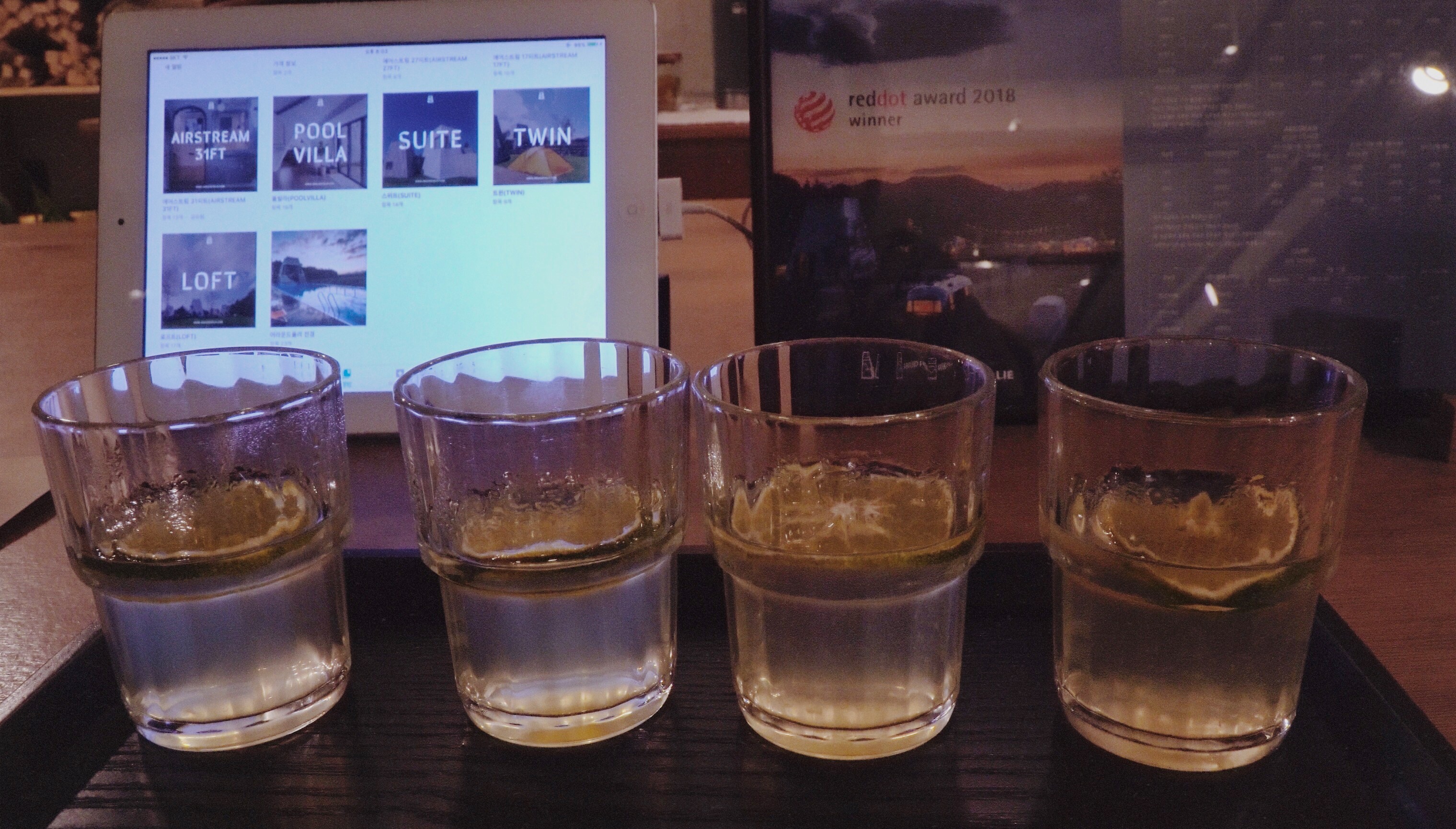 나름 웰컴 드링크가 제공되었다. 일행이 체크인을 하는 동안 나는 그 옆 샵을 구경하느라 정신없었다. 주로 캠핑 관련 용품들을 판매하고 있었다.