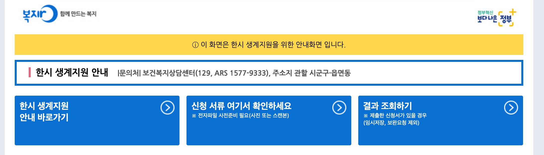 여기에서 신청서류와 결과를 확인하실 수 있습니다. 아래는 복지로 한시 생계지원금 링크입니다. 클릭하시면 복지로 사이트로 바로 이동합니다.