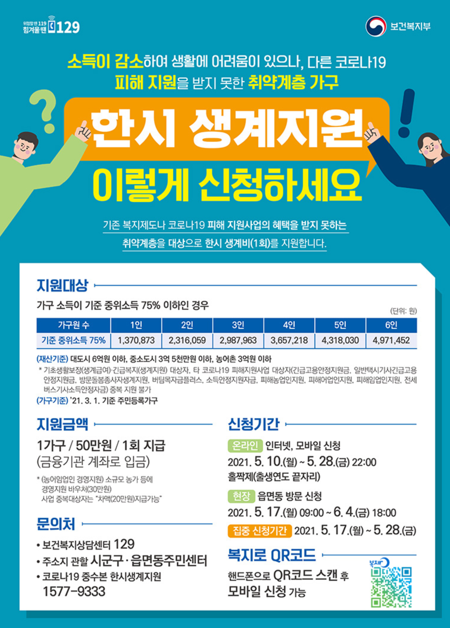 한시 생계지원금 신청 | 지원대상과 금액 (최대 50만원)