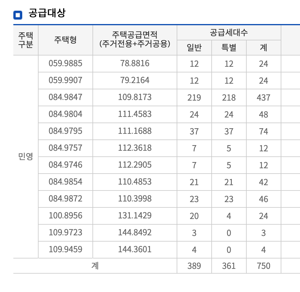 일반공급은 389세대이고요. 특별공급은 361세대입니다.