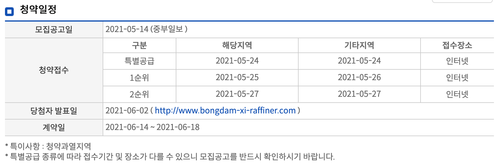 ● 특별공급 : 2021년 5월 24일 (월요일)